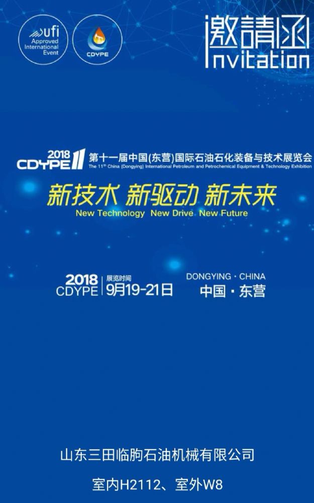 2018年國(guó)際石油石化裝備與技術(shù)展覽會(huì)將于2018年9月19日到9月21日在勝利油田隆重開幕,公司作為石油機(jī)械專業(yè)制造商,屆時(shí)將在室內(nèi)H2112,室外W8兩個(gè)展位展示我們的新裝備新技術(shù),熱忱歡迎各位專家、客商光臨三田機(jī)械展位!