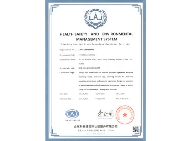 健康、安全與環(huán)境管理體系認證證書